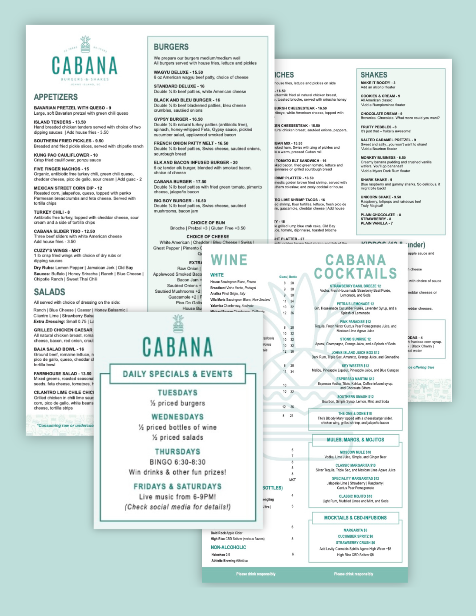 Menu redesign - Cabana Burgers & Shakes